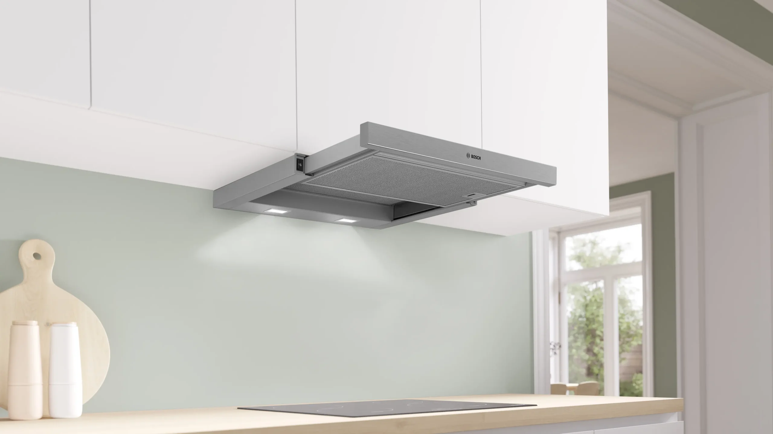 O GD B-In Exaustor Bosch 60 cm Série 2 Telescópico Prata Metálico é um exaustor embutido, compacto e discreto, que garante eficiência na extração de fumos e odores, ideal para cozinhas modernas.