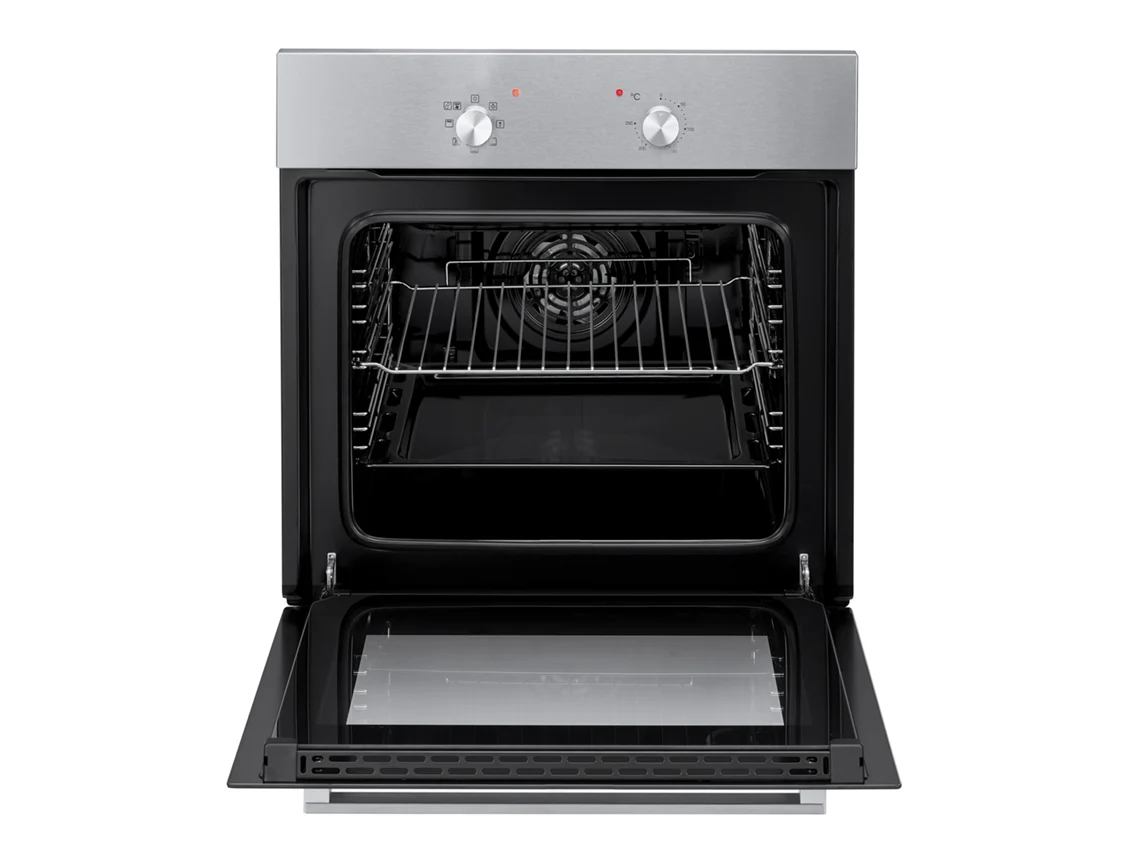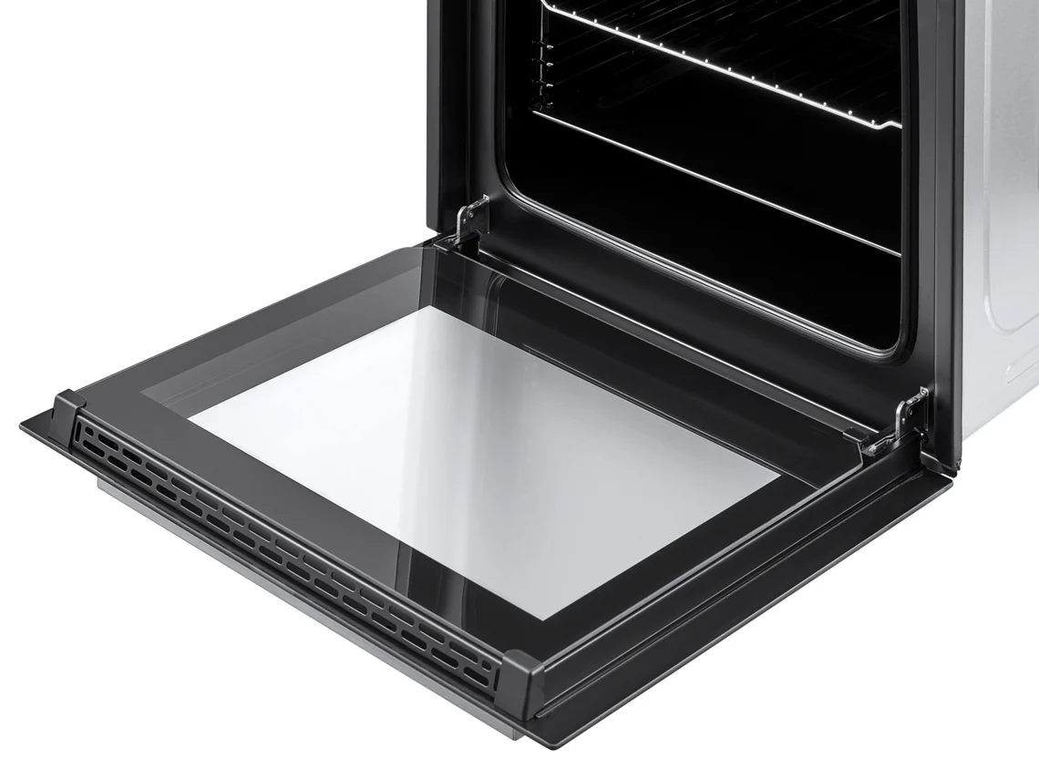 Este forno destaca-se pela ventilação interna, que garante uma distribuição homogénea de calor, permitindo cozinhar vários pratos ao mesmo tempo sem mistura de sabores. É uma opção prática para quem procura versatilidade e eficiência energética num design moderno em inox.
