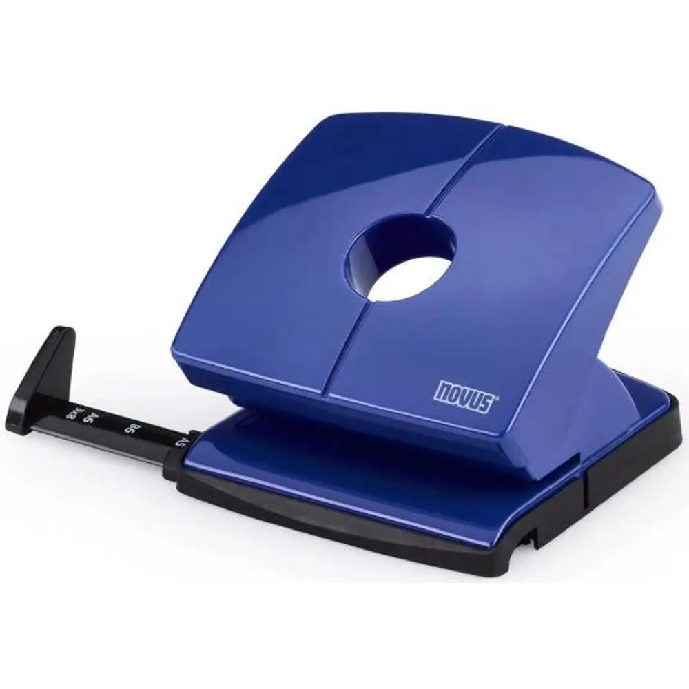 Descrição do Produto Furador de mesa Novus B220 — versão com acabamento azul
