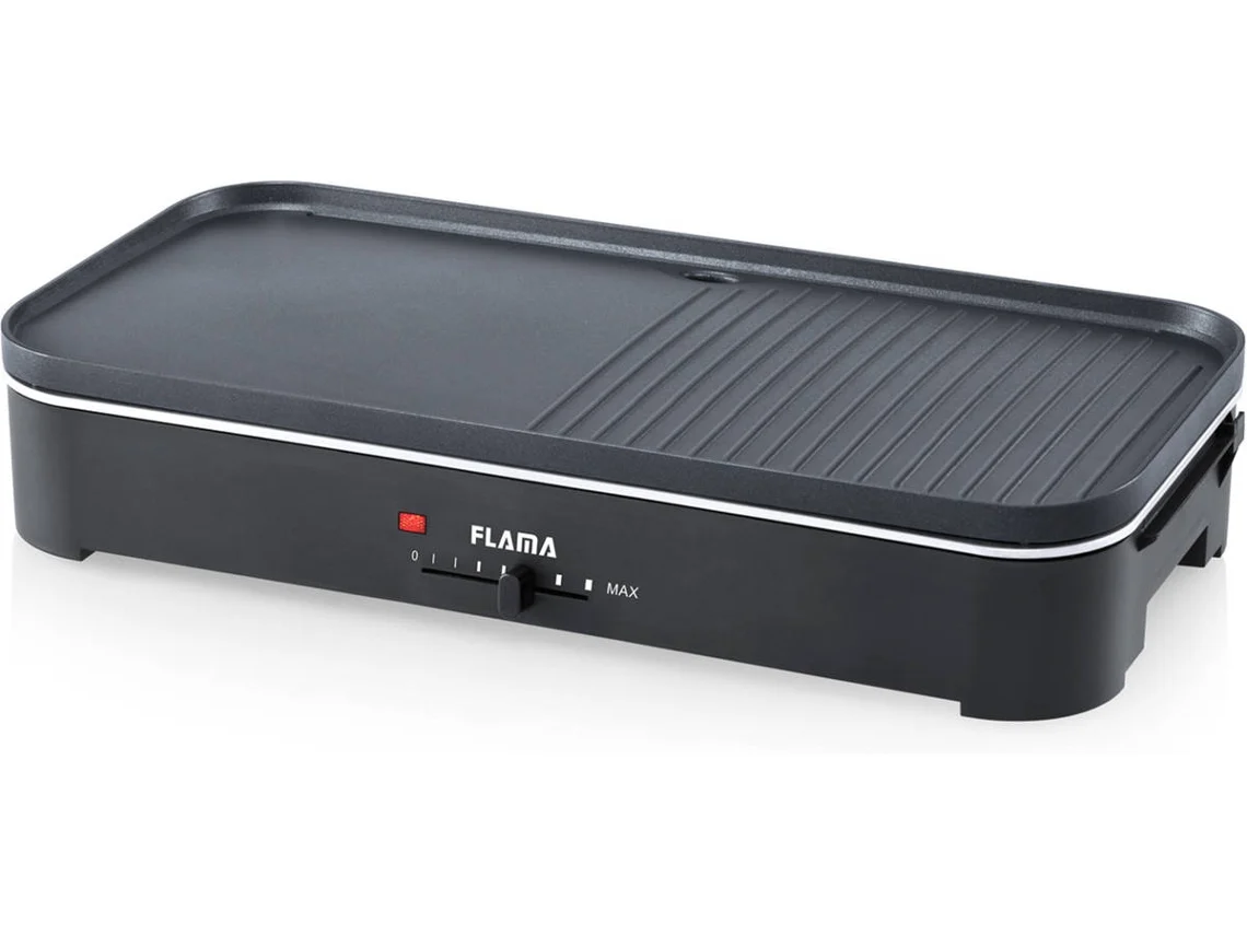 O grelhador de contacto Flama 4840FL Duo tem 2200 W de potência, placas antiaderentes e abertura dupla, ideal para grelhar carnes, peixes, vegetais e sanduíches com rapidez e praticidade.