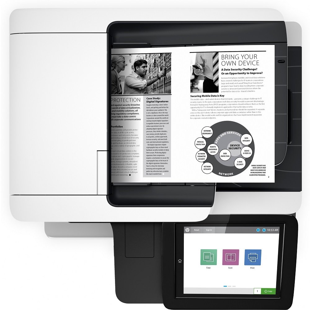 Multifuncional laser monocromática empresarial com impressão frente e verso automática, digitalização em passada única, segurança avançada HP Wolf Pro e tela sensível ao toque — ideal para equipes que exigem alto desempenho e controle.