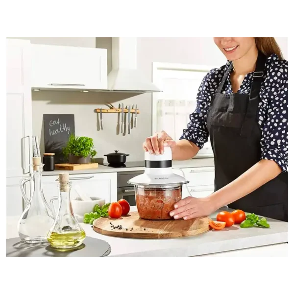 O picador Bosch de 400 W, branco, é um eletrodoméstico compacto e potente, ideal para triturar, picar e preparar alimentos de forma rápida e prática.