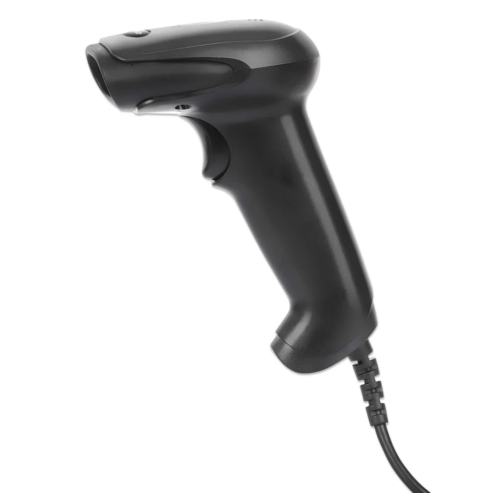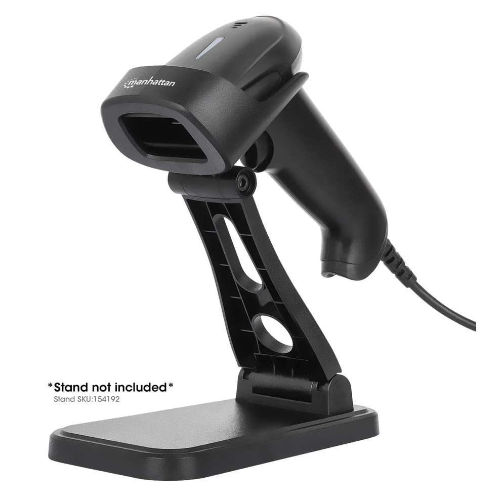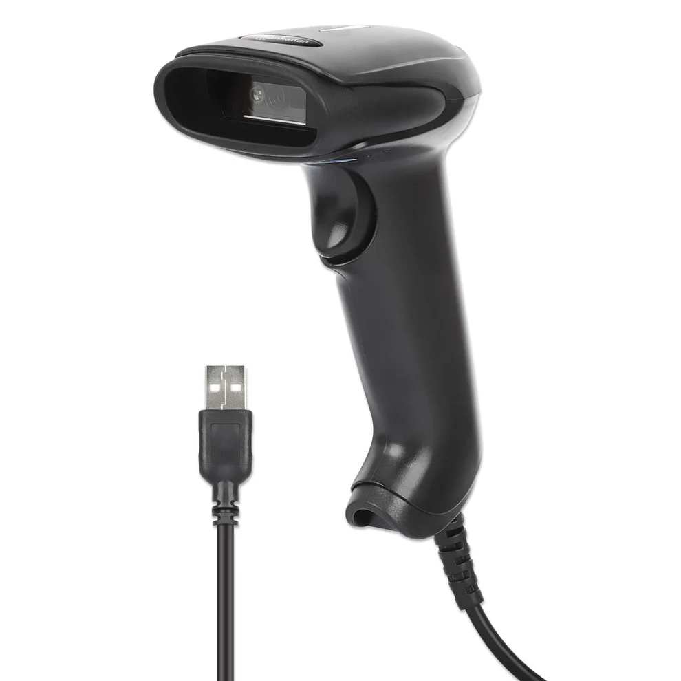 Scanner Manhattan USB 2D com leitura até 320 mm e tolerância de 100.000 lux. Ideal para ambientes comerciais com forte iluminação.