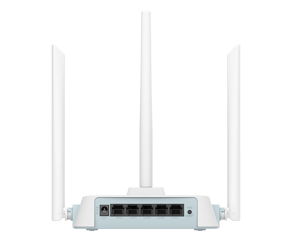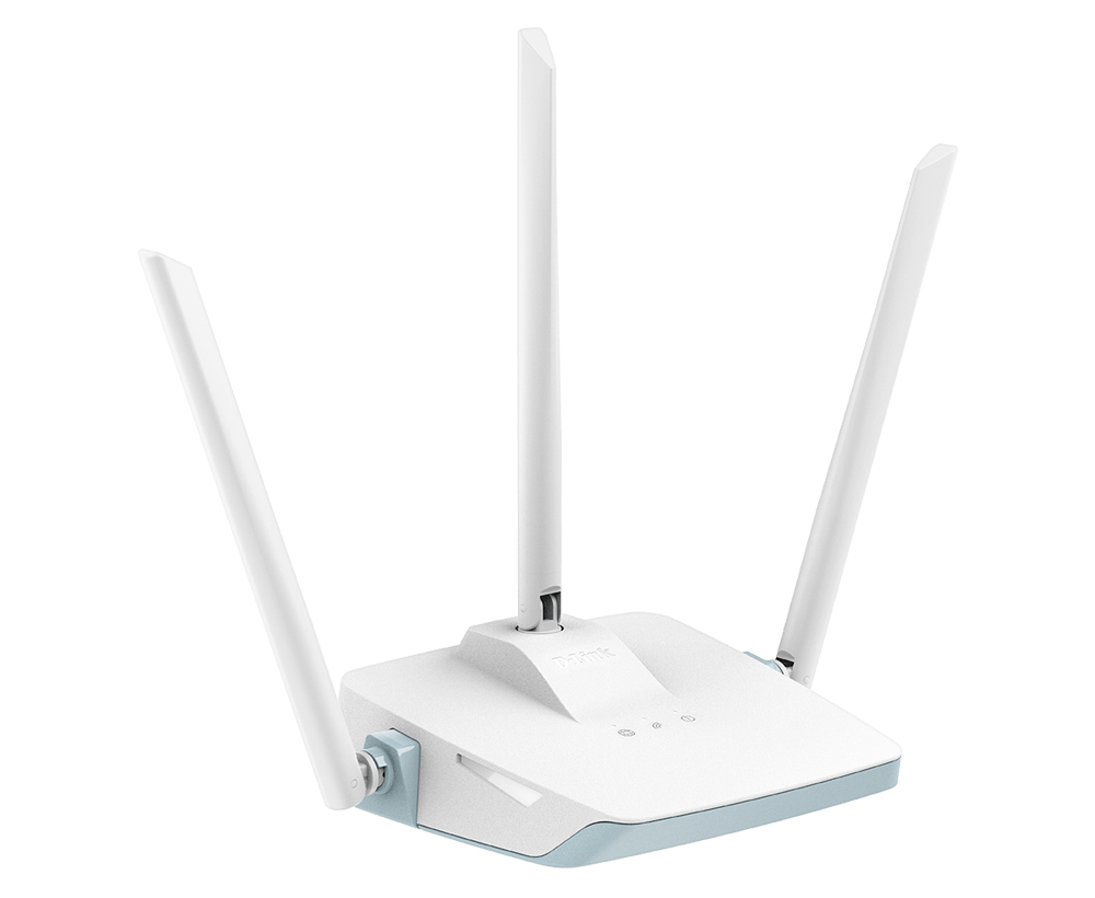 Roteador D-Link N300 com 1 WAN, 4 LAN e 3 antenas externas 5 dBi, com suporte a AI App. Ideal para residências e pequenos escritórios, oferece Wi-Fi estável, cobertura ampla e gerenciamento remoto fácil