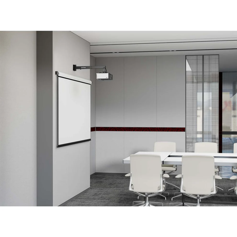 O suporte universal para projetores Manhattan oferece instalação segura e versátil em teto ou parede, com ajustes precisos e estrutura leve, ideal para ambientes domésticos e profissionais
