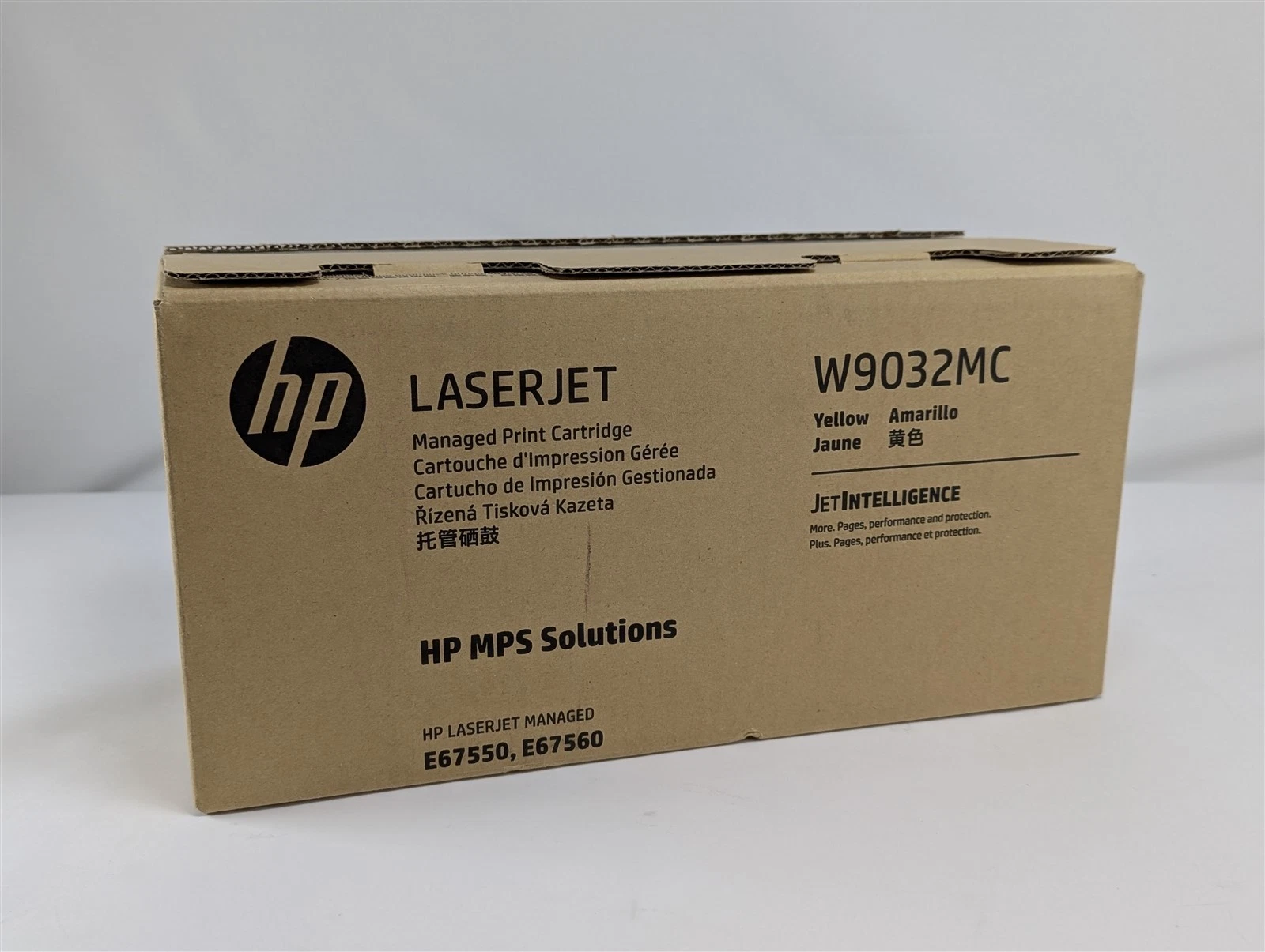 Toner HP W9032MC Amarelo Contract para E67550/E67560, rendimento de até 28.000 páginas, oferecendo cores vivas, alto desempenho e confiabilidade HP.