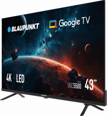 TV BLAUPUNKT 43″ LED 4K UHD com Google TV — imagens incríveis, comando por voz, Chromecast integrado e acesso aos principais apps de streaming.